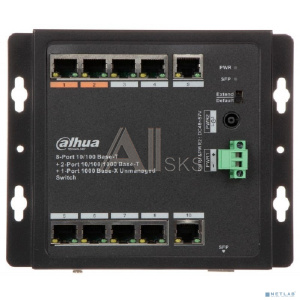 DAHUA DH-PFS3111-8ET-96-F 11-портовый неуправляемый коммутатор с PoE, уличное исполнение, 8xRJ45 100Mb, 2xRJ45 1Gb + 1xSFP 1Gb uplink, суммарно 96Вт, коммутация 13.6 Гбит/с, MAC-таблица 8К